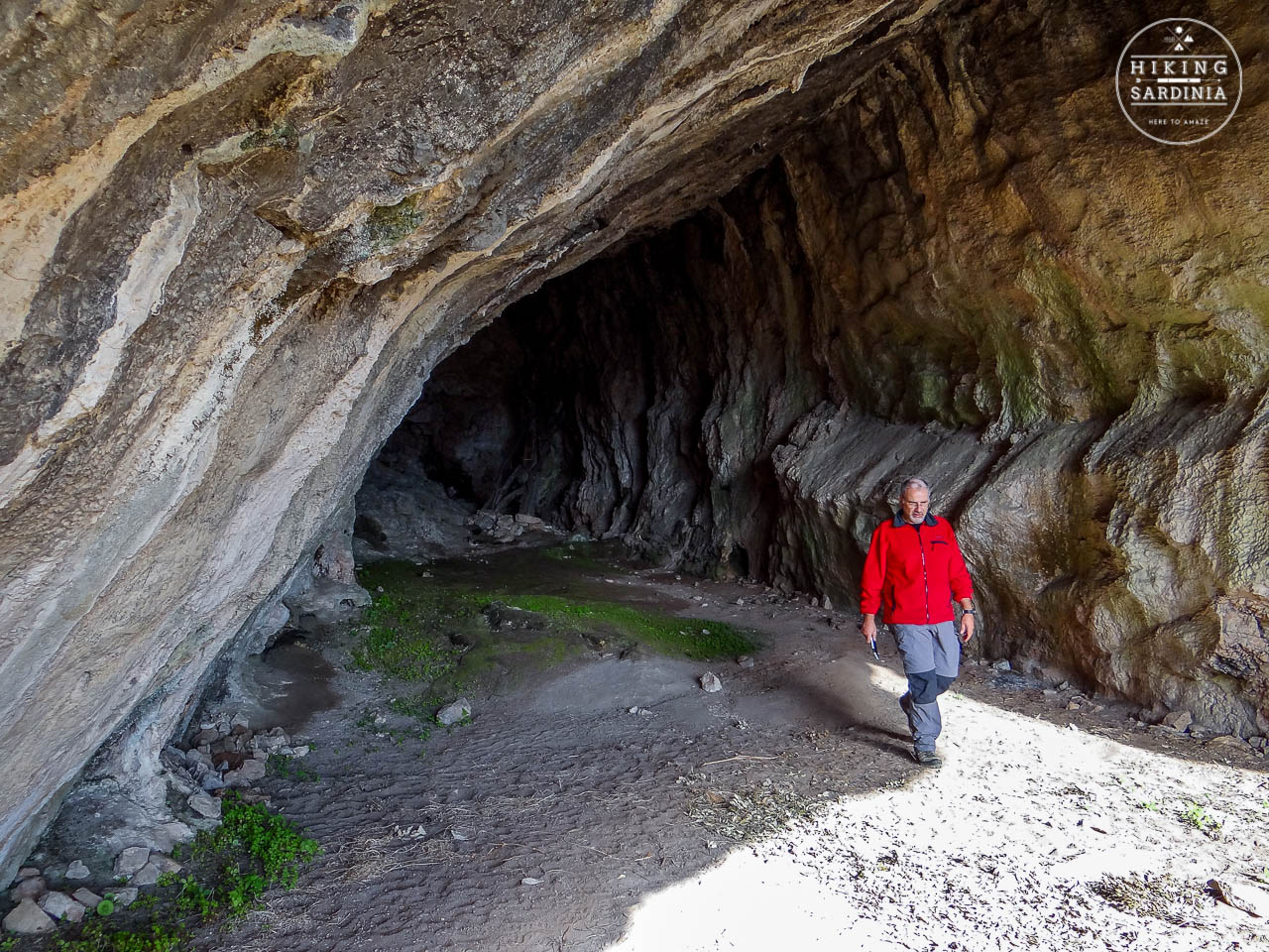 Il sentiero prosegue in forte discesa lungo un bacu sino ad un incrocio sulla sinistra che, invece, si inerpica lungo il fianco della collina. Affrontiamo quella che è tra le più impegnative salite che abbiamo mai affrontato e che ha una pendenza di oltre il 50% e fondo sdrucciolevole ma alla fine si giunge in una zona con diversi anfratti, profonde cengie e grotticelle e, in cima, la Grotta Omines Agrestes.